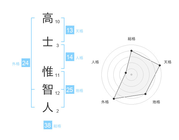 高士 惟智人さんの総格は38画の4点!