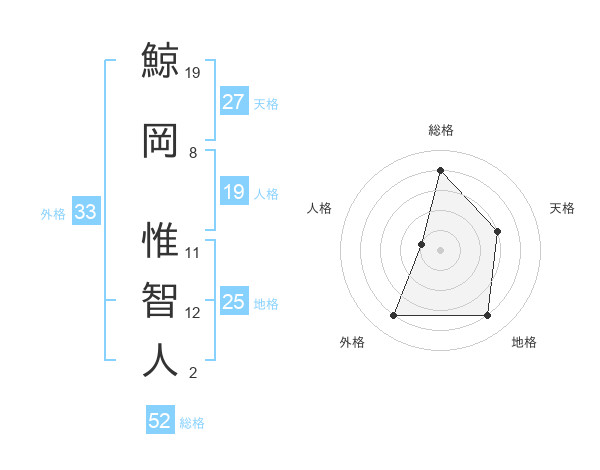 鯨岡 惟智人さんを姓名の画数から五運を鑑定