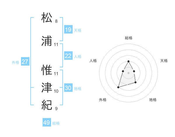 松浦 惟津紀さんを姓名の画数から五運を鑑定