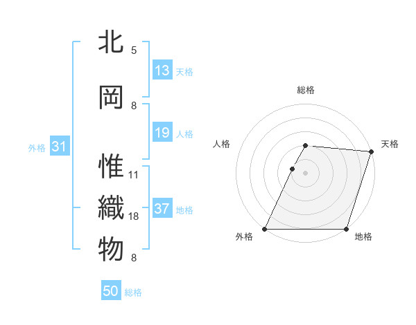 北岡 惟織物さんの総格は50画の2点!