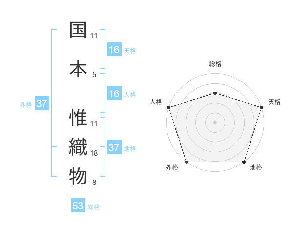 国本 惟織物さんの総格は53画の3点!