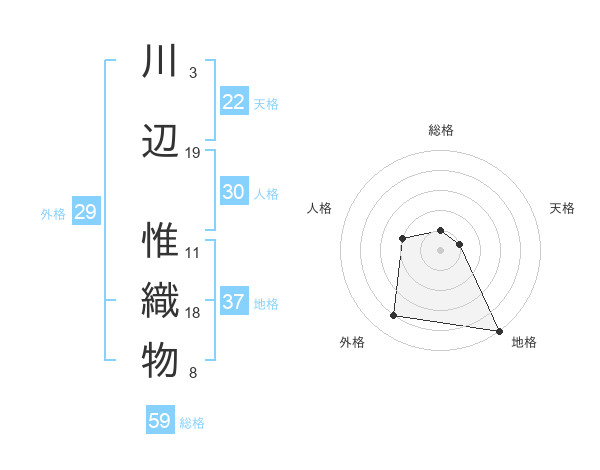 川辺 惟織物さんを姓名の画数から五運を鑑定