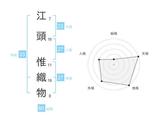 江頭 惟織物さんを姓名の画数から五運を鑑定