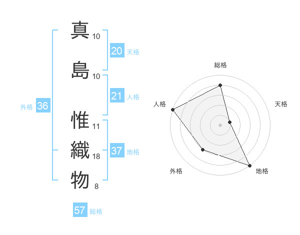 真島 惟織物さんを姓名の画数から五運を鑑定