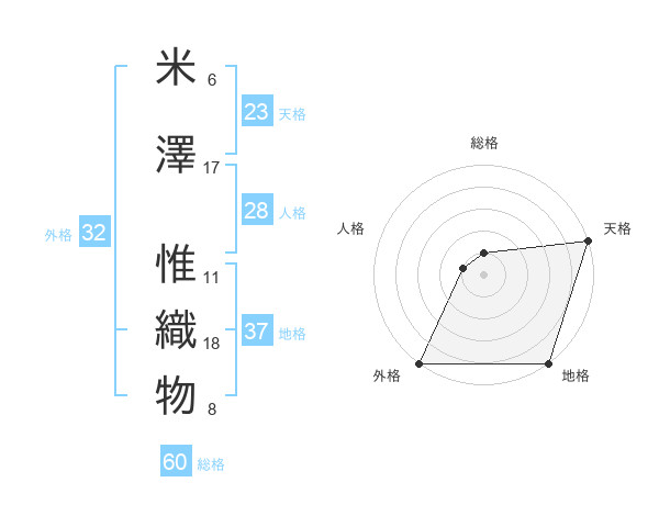 米澤 惟織物さんの外格は32画の5点