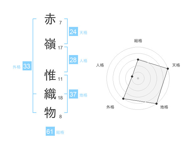 赤嶺 惟織物さんの総格は61画の3点!