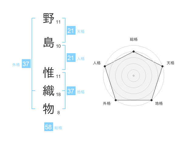 野島 惟織物さんを姓名の画数から五運を鑑定