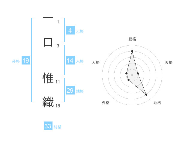 一口 惟織さんの地格は29画の4点!