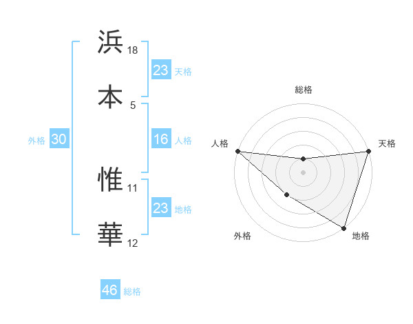 浜本 惟華さんの天格は23画の5点