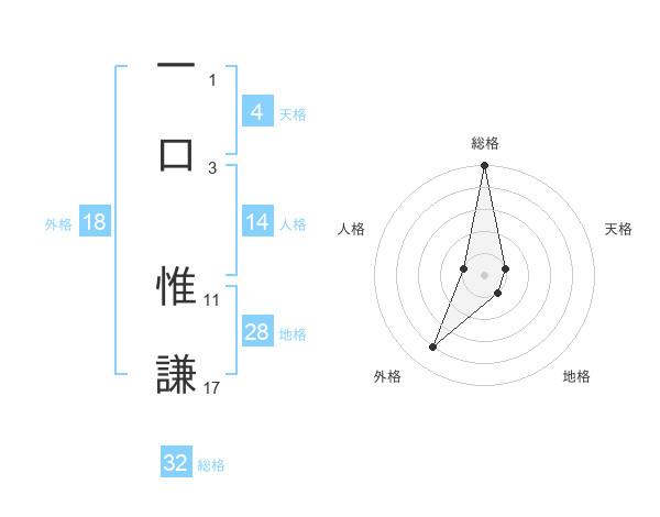 一口 惟謙さんを姓名の画数から五運を鑑定