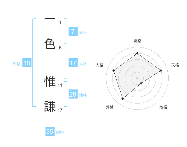 一色 惟謙さんを姓名の画数から五運を鑑定