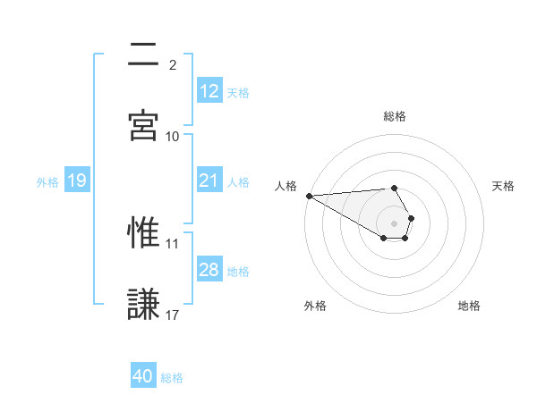 二宮 惟謙さんを姓名の画数から五運を鑑定
