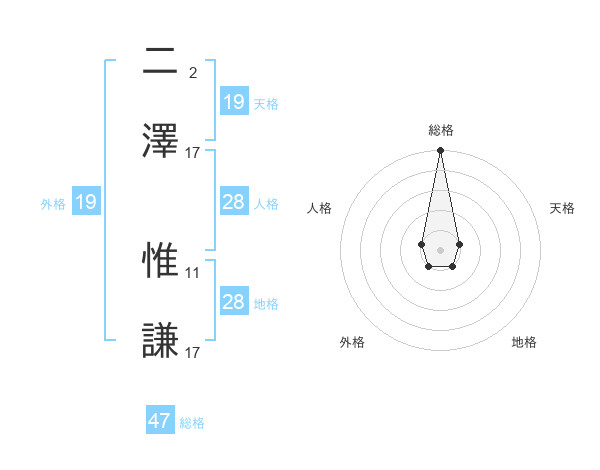 二澤 惟謙さんの総格は47画の5点!