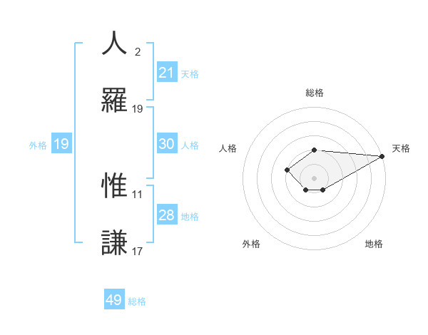 人羅 惟謙さんの総格は49画の2点!