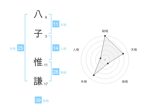 八子 惟謙さんの総格は39画の5点!