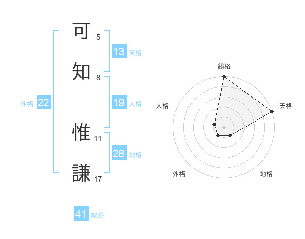 可知 惟謙さんの天格は13画の5点!