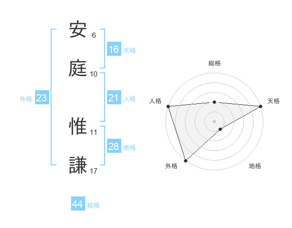 安庭 惟謙さんの外格は23画の5点!