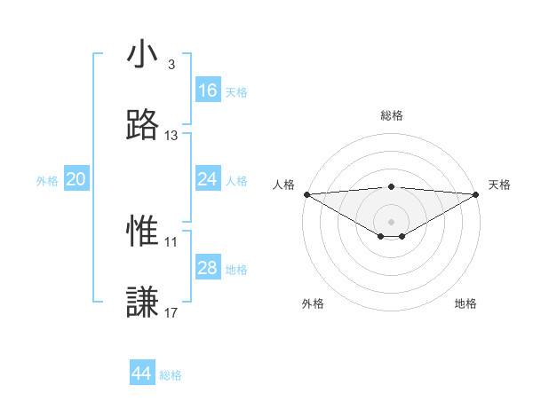 小路 惟謙さんを姓名の画数から五運を鑑定