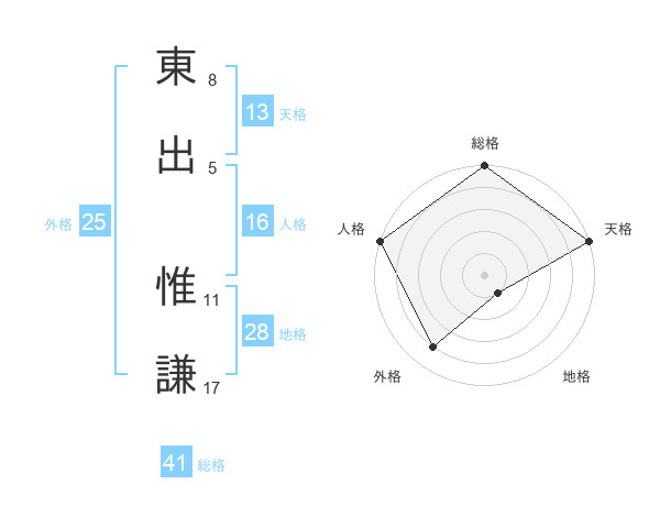 東出 惟謙さんを姓名の画数から五運を鑑定