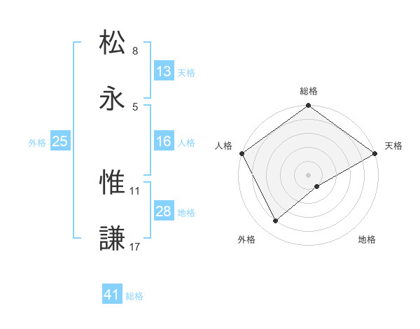 松永 惟謙さんを姓名の画数から五運を鑑定