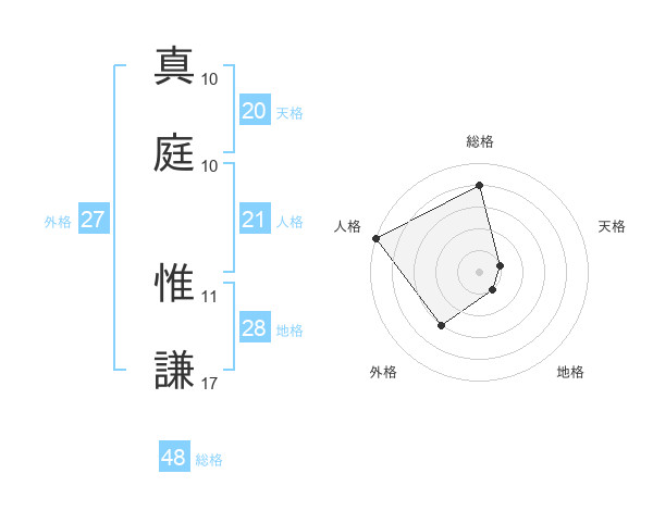真庭 惟謙さんの天格は20画の1点!