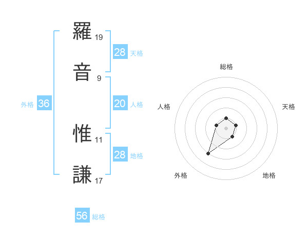 羅音 惟謙さんを姓名の画数から五運を鑑定