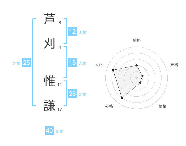 芦刈 惟謙さんを姓名の画数から五運を鑑定