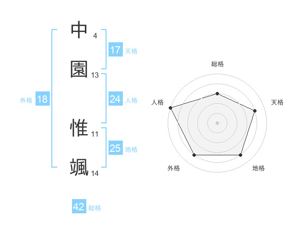 中園 惟颯さんの天格は17画の4点!