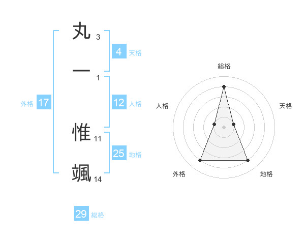丸一 惟颯さんの総格は29画の4点!