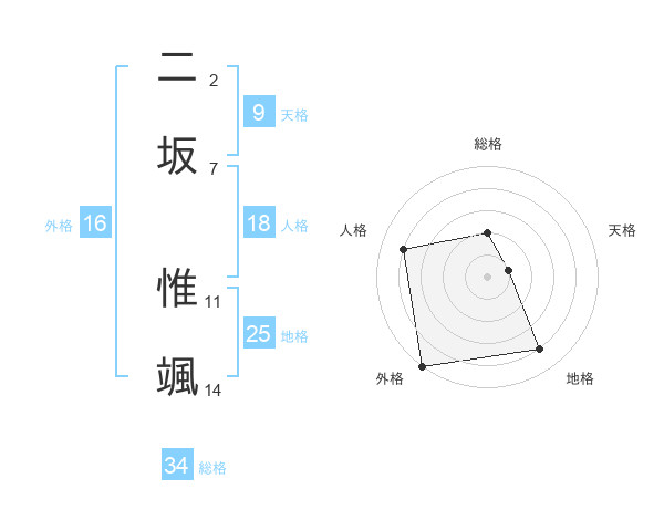 二坂 惟颯さんの総格は34画の2点!