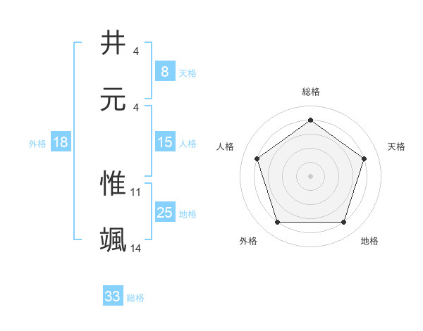 井元 惟颯さんの総格は33画の4点!