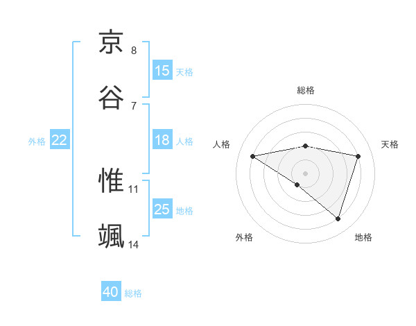 京谷 惟颯さんの天格は15画の4点!