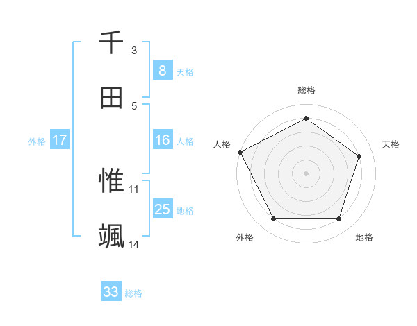 千田 惟颯さんの総格は33画の4点!