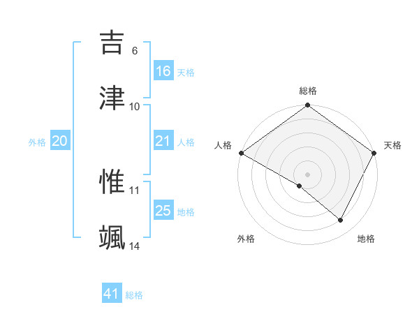 吉津 惟颯さんの天格は16画の5点!