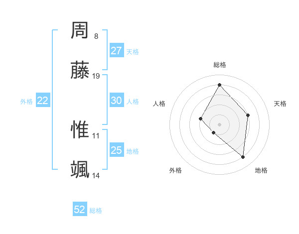 周藤 惟颯さんの総格は52画の4点!
