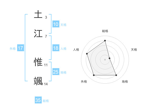 土江 惟颯さんの総格は35画の4点!