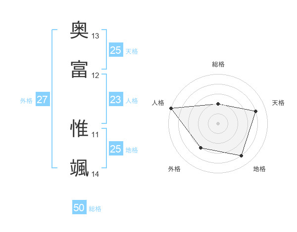奥富 惟颯さんの総格は50画の2点!
