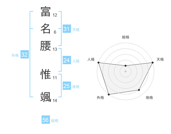 富名腰 惟颯さんを姓名の画数から五運を鑑定