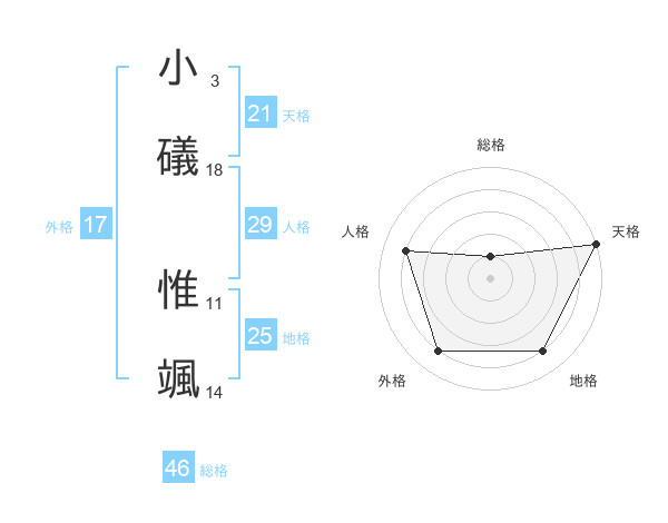 小礒 惟颯さんの天格は21画の5点!