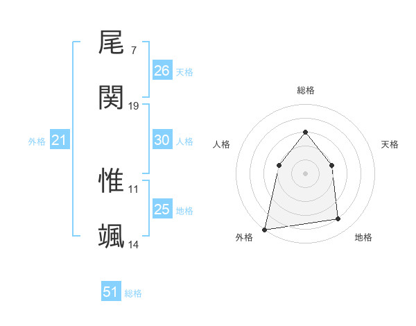尾関 惟颯さんを姓名の画数から五運を鑑定