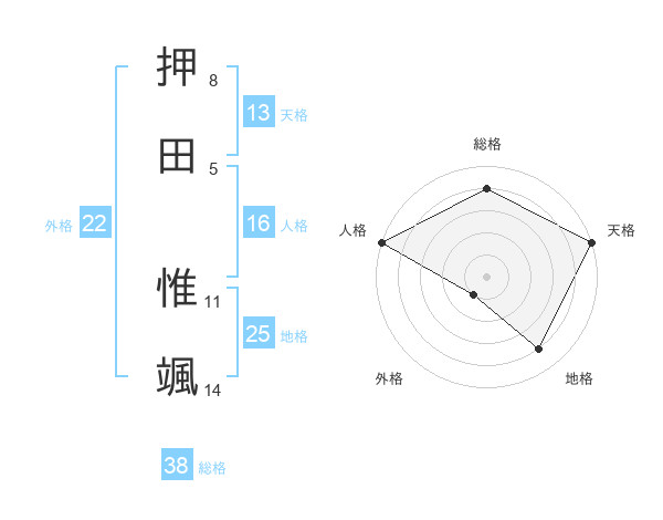 押田 惟颯さんの外格は22画の1点!