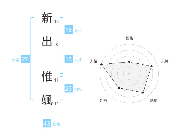 新出 惟颯さんの人格は16画の5点!