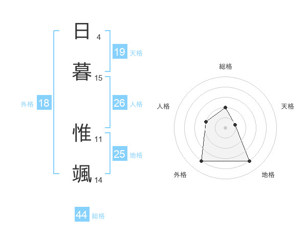 日暮 惟颯さんの総格は44画の2点!