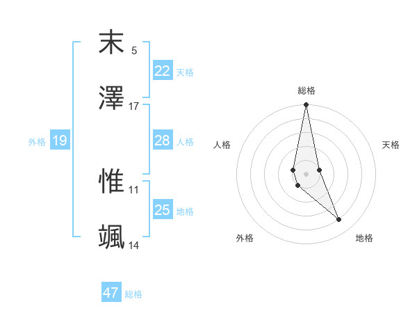 末澤 惟颯さんの総格は47画の5点!