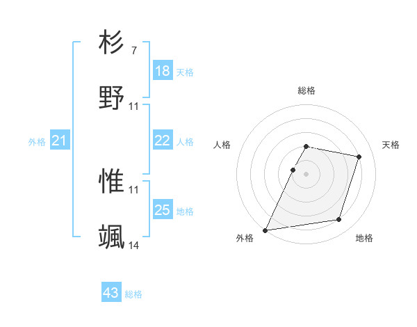 杉野 惟颯さんを姓名の画数から五運を鑑定