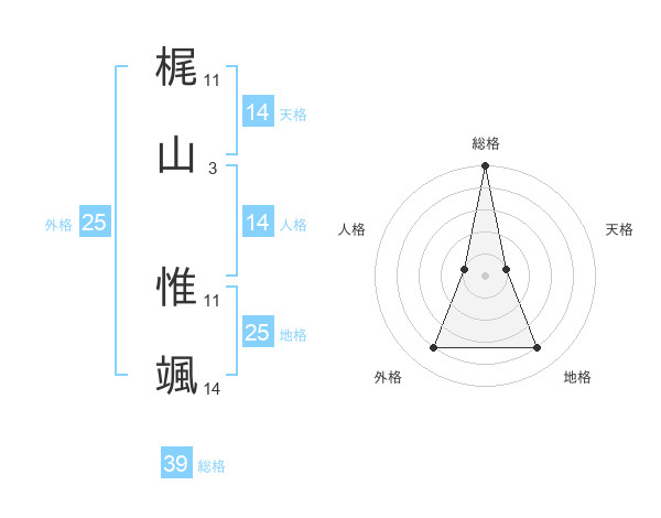 梶山 惟颯さんを姓名の画数から五運を鑑定