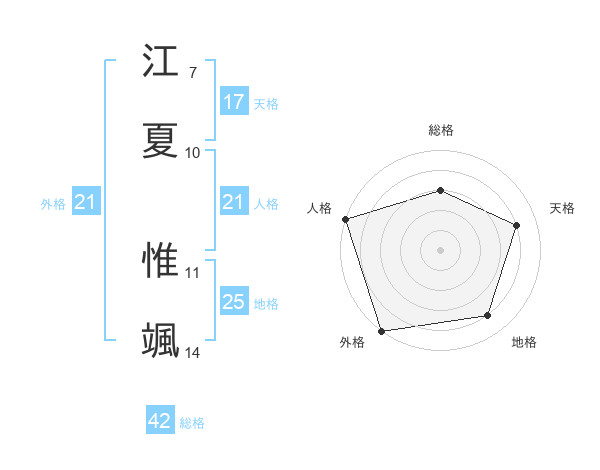 江夏 惟颯さんを姓名の画数から五運を鑑定