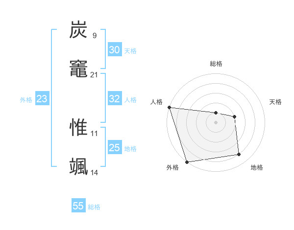 炭竈 惟颯さんを姓名の画数から五運を鑑定