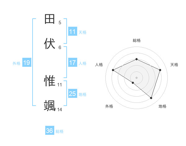 田伏 惟颯さんの天格は11画の4点!