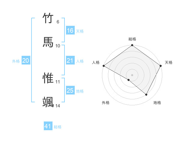 竹馬 惟颯さんの外格は20画の1点!